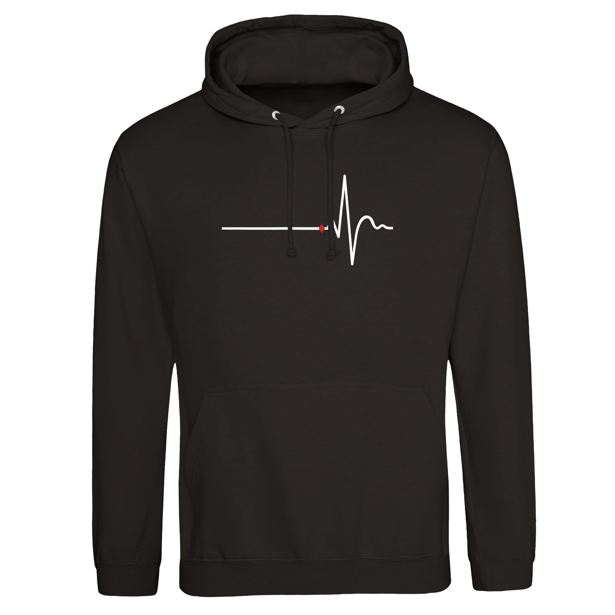 I’ve spent a lot of time moving through the day without really being in it, noticing how easily the hours can flatten into something smooth and unmarked. There’s a quiet exhaustion in that — the slow pull of drifting on autopilot, set against the part of me that still wants to feel something sharp and present. I call this Awake // Asleep, not as a claim, just as a way of naming where staying conscious and slipping back into ease sit beside each other. In this pullover hoodie, I notice a long, steady line that holds, and one place where it breaks before settling again. Sometimes it feels like smooth ground broken once, then smoothed again. The red diamond is where my attention returns when that shift becomes noticeable — not a fix, just a small, physical point I come back to while both states continue.
