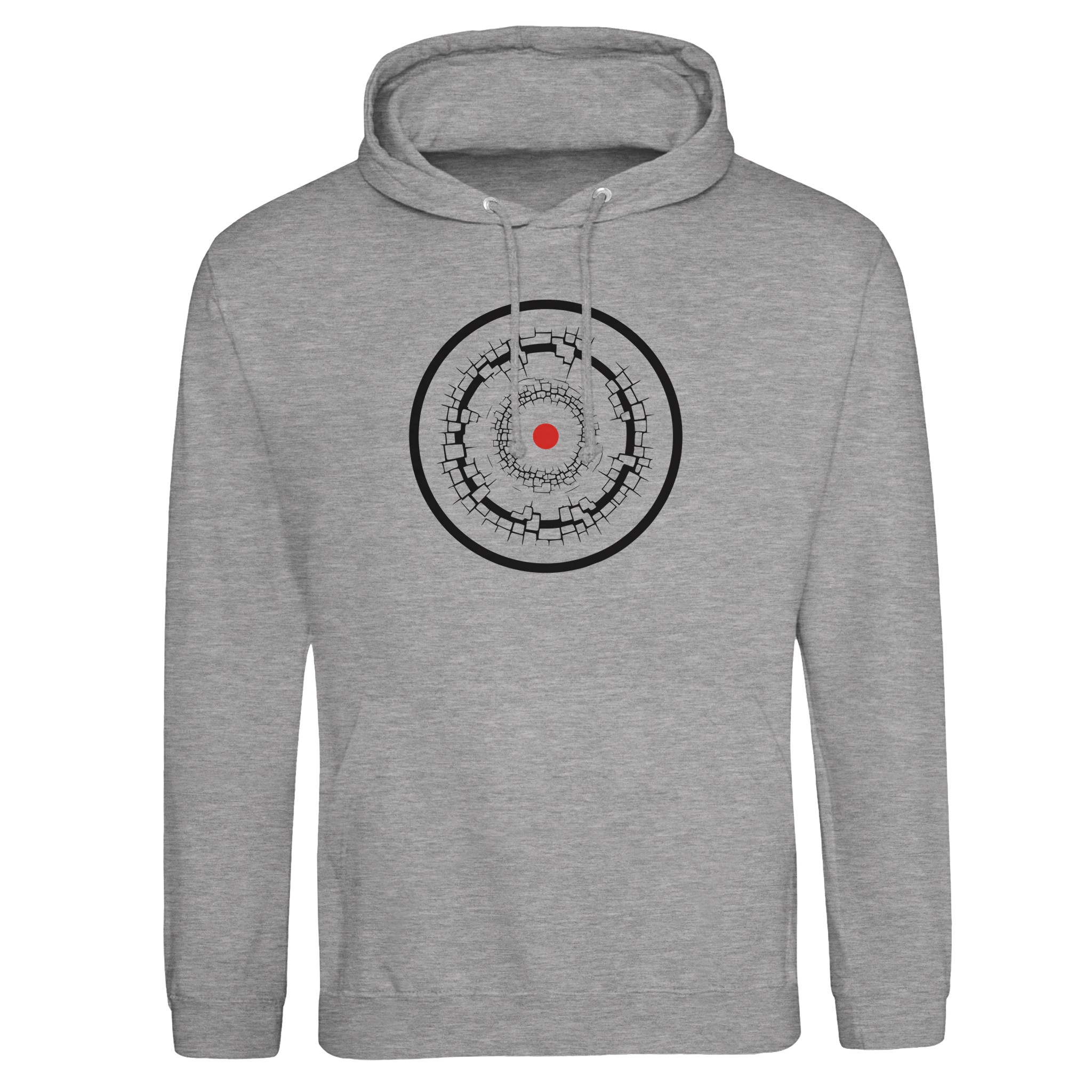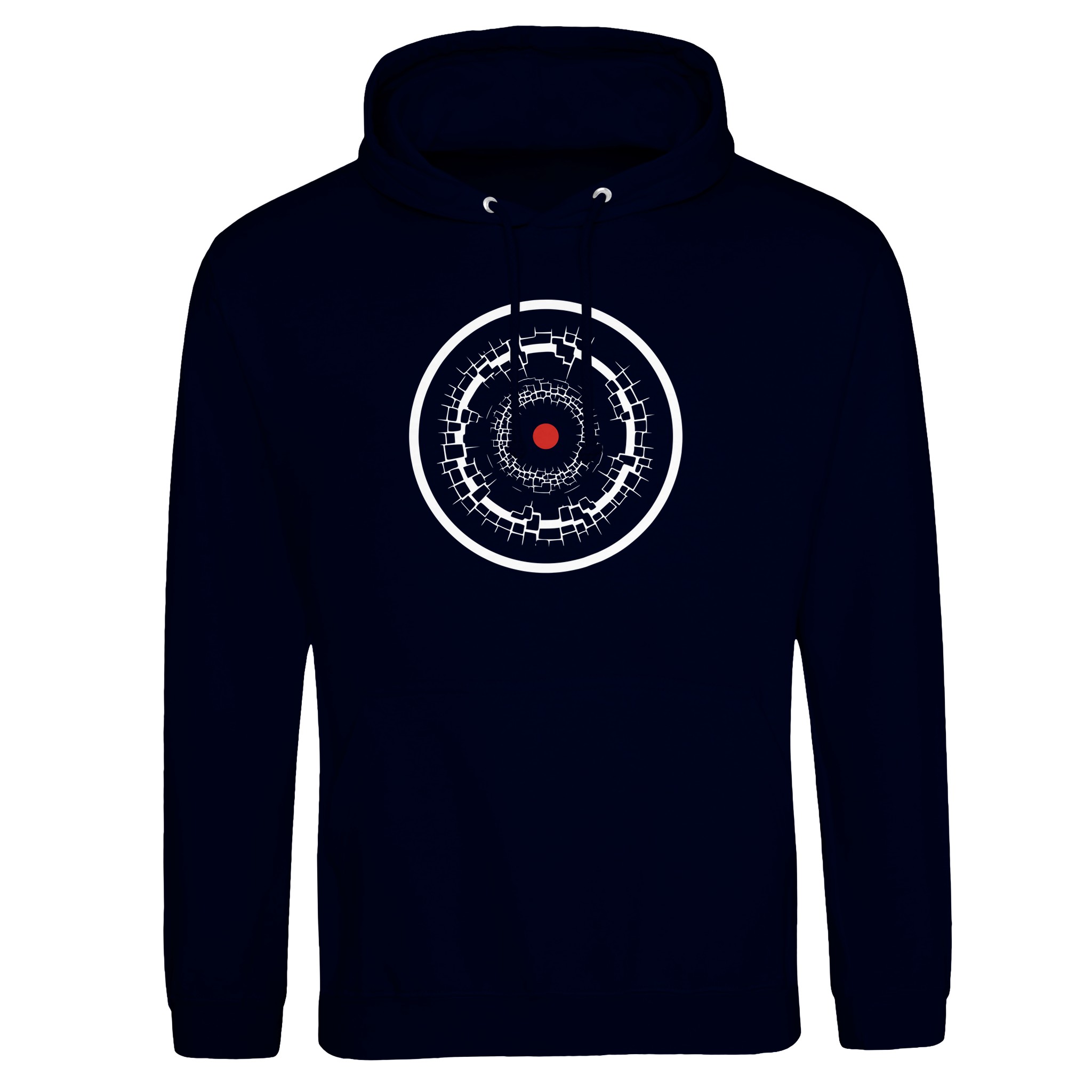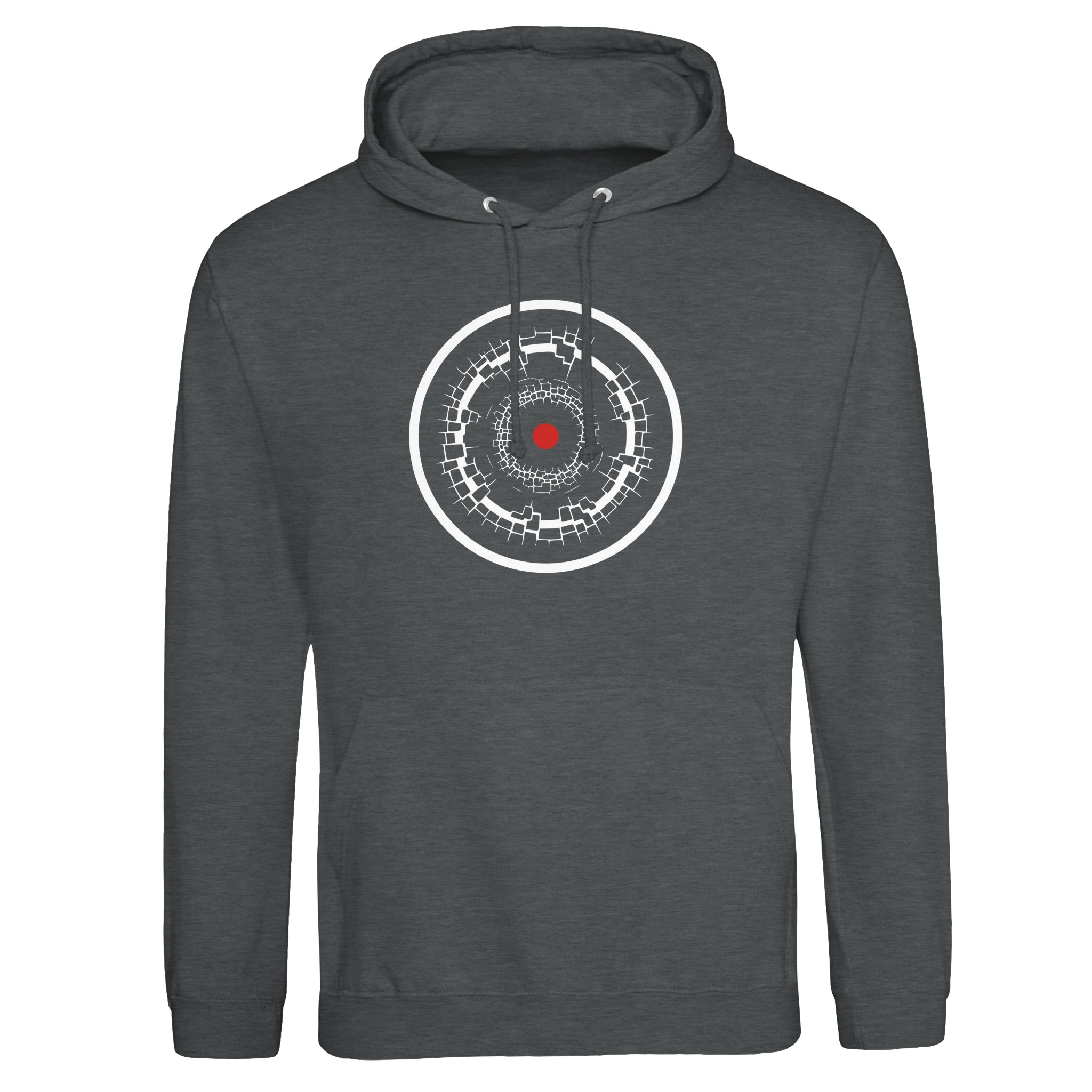 Ego and Awareness pullover hoodie by Casual Clash in arctic white with black ovals and a red circle Ego // Awareness Price range: £49.00 through £52.00
